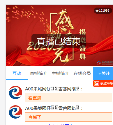 到了直播结束时间 显示直播结束