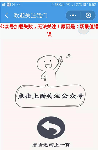 扫码进来也是那样。 加载提示失败后顿挫后转到了引导关注文章。