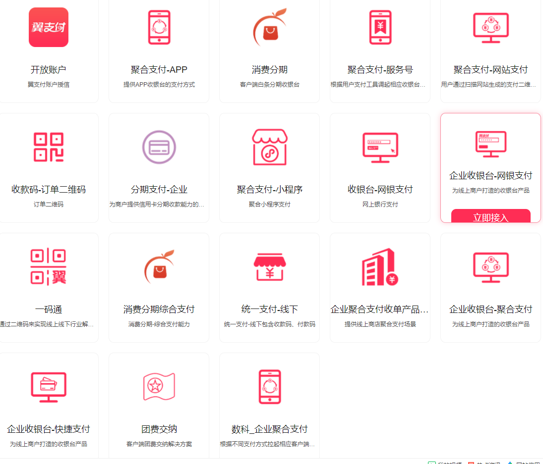 翼支付目前集成了微信、支付宝、银联等多个通道,手续费也非常低。而且支持多种支付方式,H5支付、APP支付、小程序支付、扫码支付……多种支付方式都有。并且各种功能也非常齐全。如果能整合进X1,只需要一个帐户,就能解决所有资金通道,是个非常适合的支付方式。