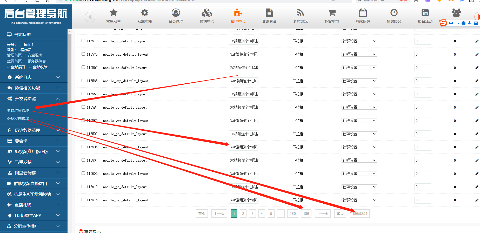 开发者功能,参数选项功能,应用圈子,又生成186页,9254条PC端频道个性风格选项菜单!