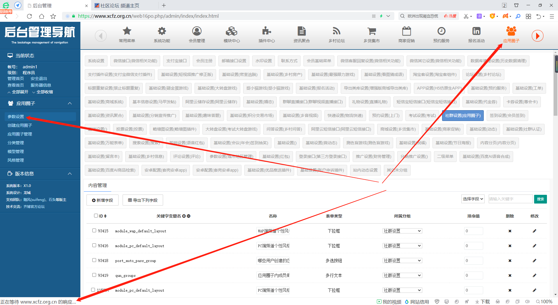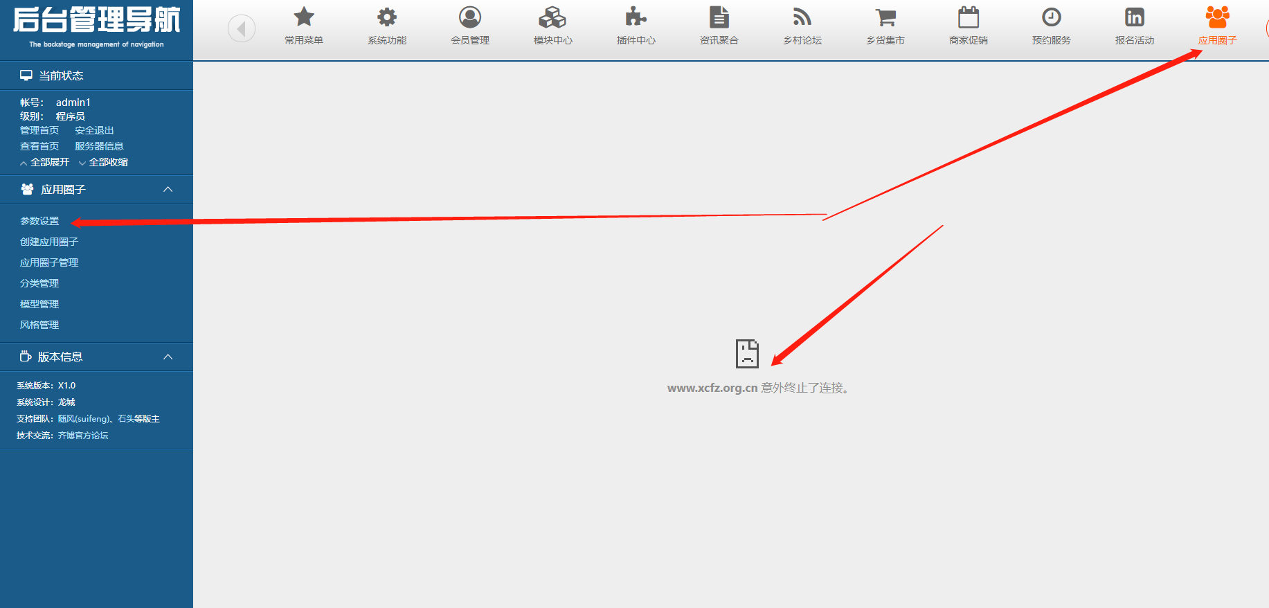 应用圈子,参数设置打不开,直接拖死服务器让网站断网链接不上!