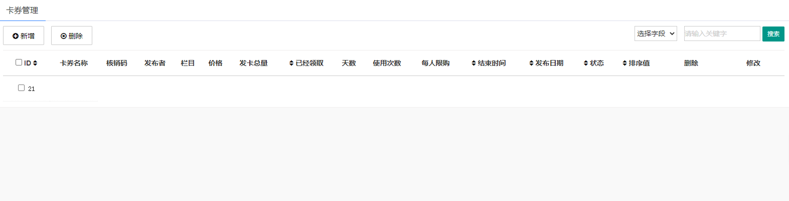 卡券管理,后台打开,不显示卡券,里面有,但是只显示了一个ID ,后面都不显示是怎么回事啊?