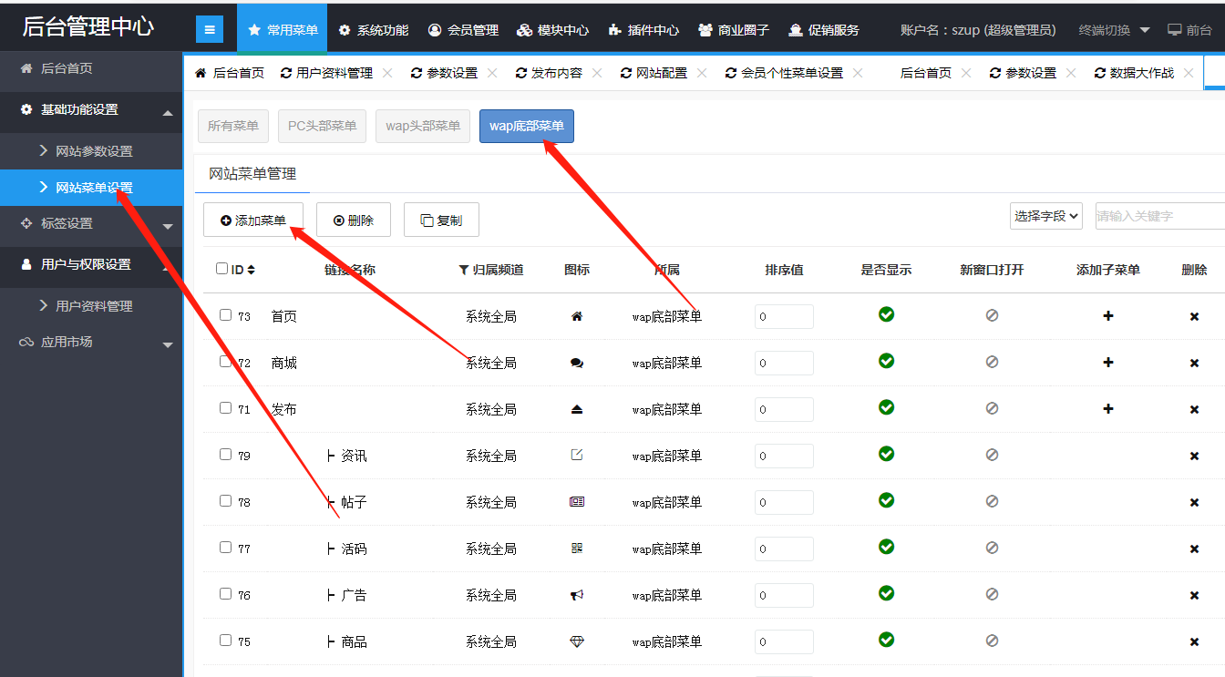 底部菜单碎片请问如何开启呢?