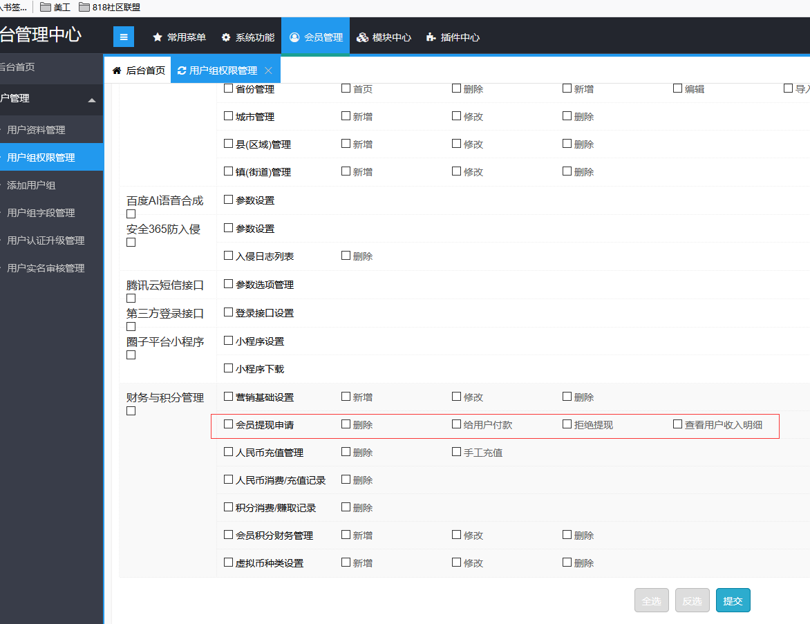 会员提现申请,只能admin来通过吗?设置了一个拥有后台权限的账号,点击微信付款,提示没有权限。