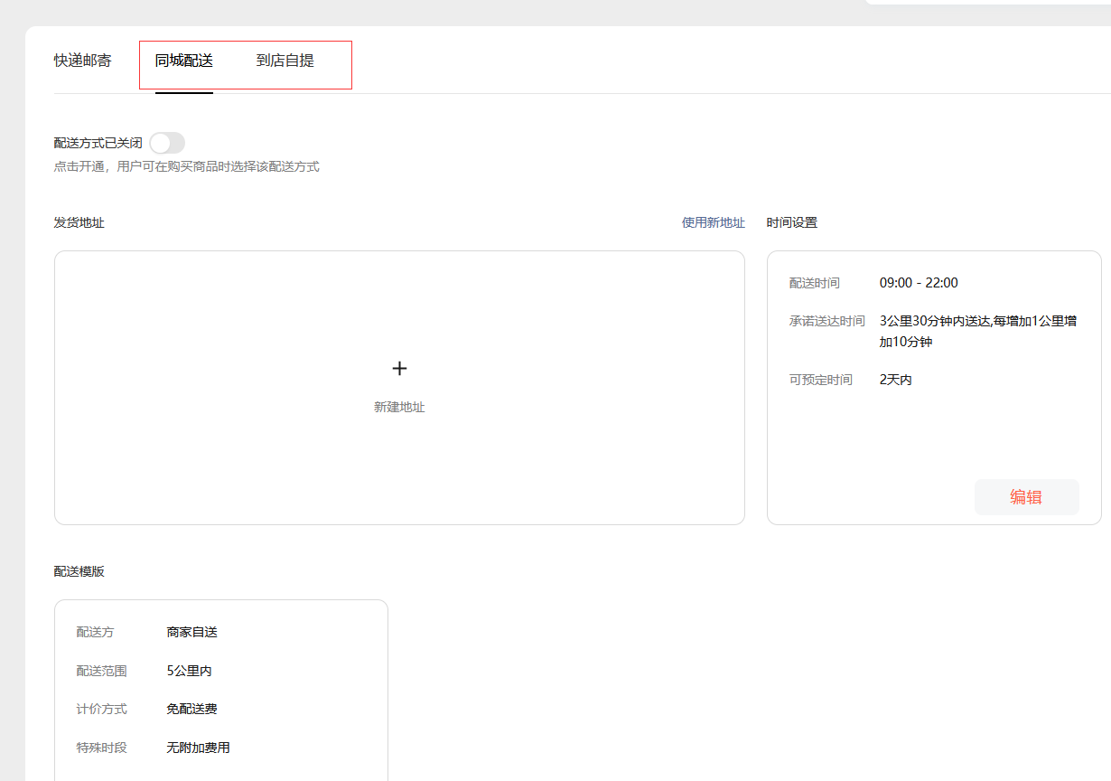 建议我们的促销商城增加(到店自提和同城配送)配送方式,可以参照小程序商店的,目前我们的促销商城没有明确的配送方式,一般用户也不清楚是物流配送的还是到店自提的?