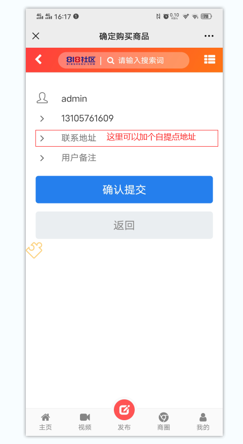 那希望明确提醒用户(上门自提点)现在我们商城又有2个用户会搞晕的。
