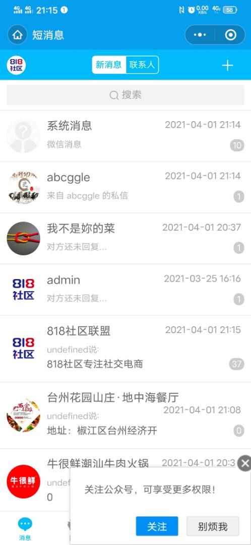 龙老大那小程序关注公众号提示,可以把关了吧或者搞个开关,现在做私域流量商户不喜欢关注平台公众号。