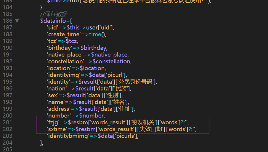 'fzjg'=>$resbm['words_result']['签发机关']['words']?:'',