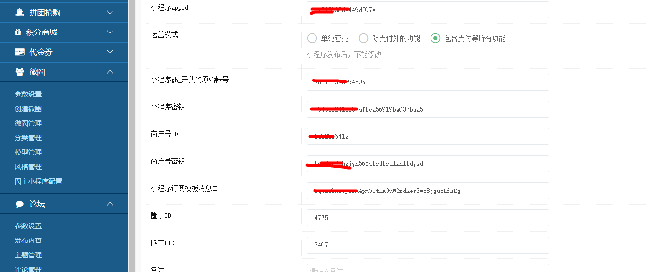 如果创建小程序需要支付是不是先要在这里配置好圈子小程序的圈子UID和用户UID
