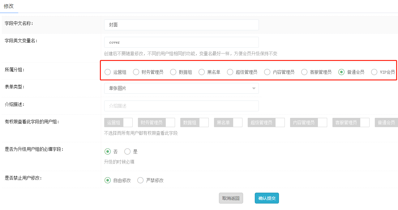一个字段要按用户组添加好几个