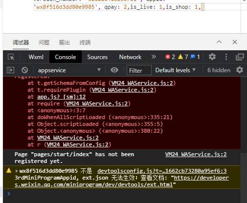 VM24 WAService.js:2 Page "pages/start/index" has not been registered yet.