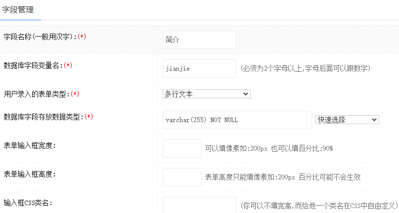 模型字段管理:用户录入的表单类型为单行文本的,输入框的高度如何设置(后台只有输入框宽度设置),输入框CSS类名是在哪个CSS文件里设置