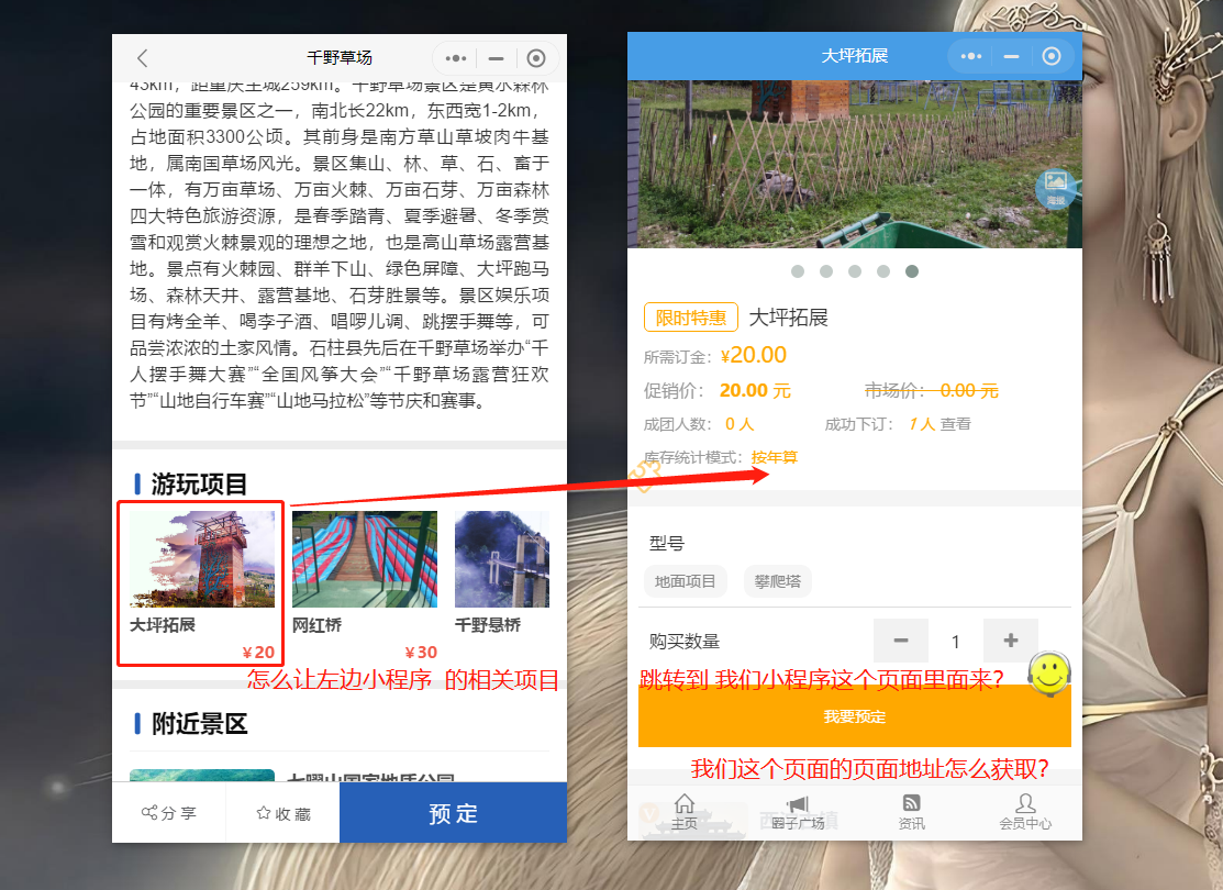 如图所示,怎么让左边小程序的相关项目 跳转到 我们小程序的具体页面里面来? 我们这个小程序具体页面地址怎么获取?