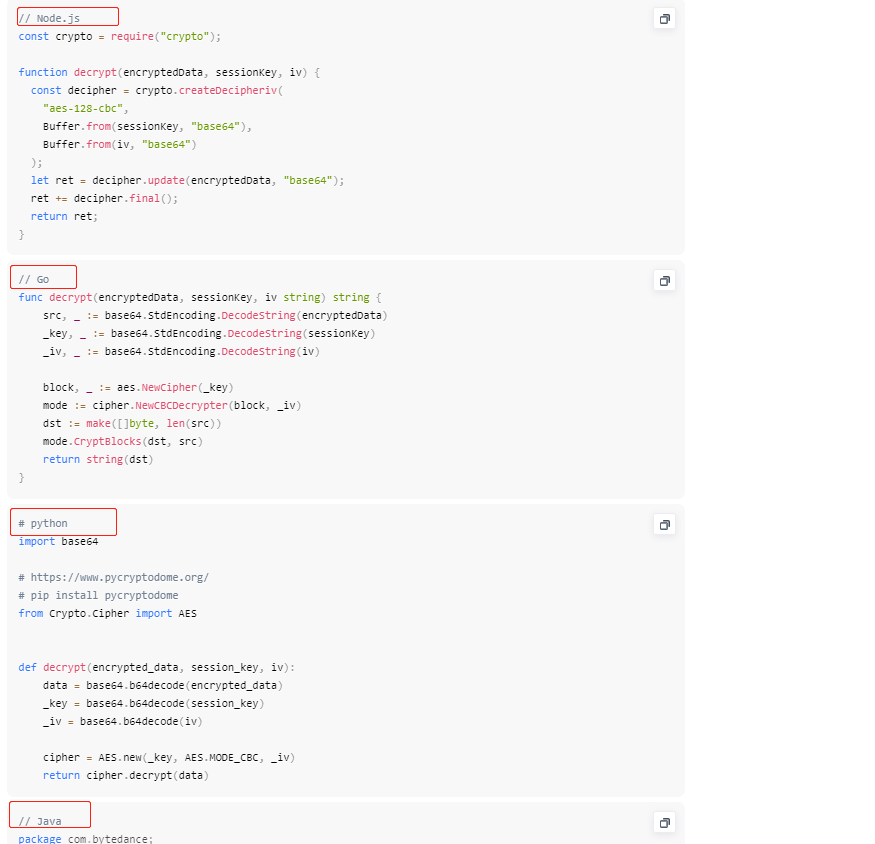 今天遇到一个问题,字节跳动的小程序获取用户手机号,过程中需要解密敏感数据