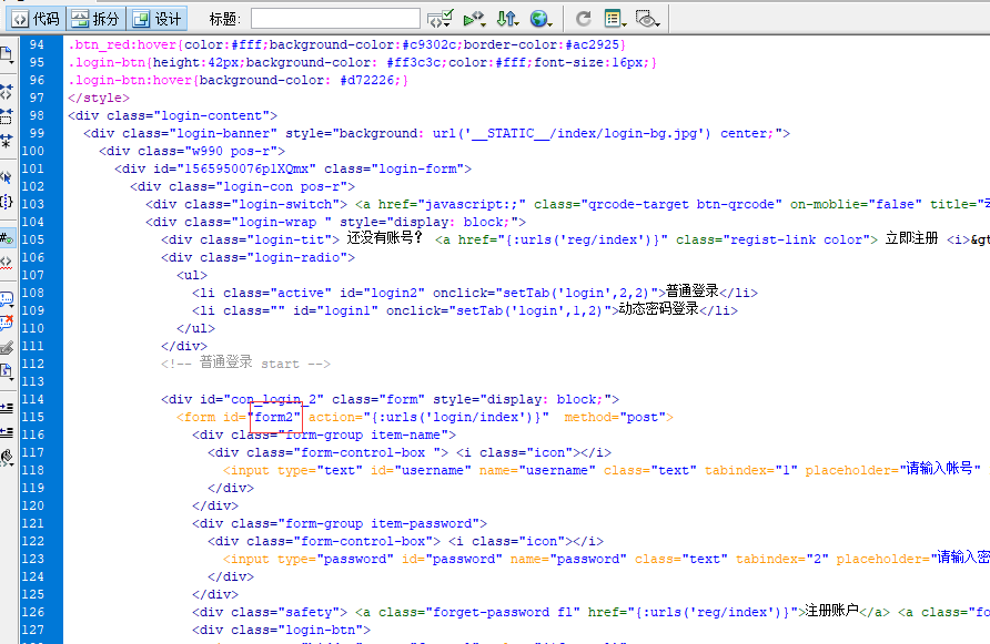 请问登录页面的form2表在那个文件夹