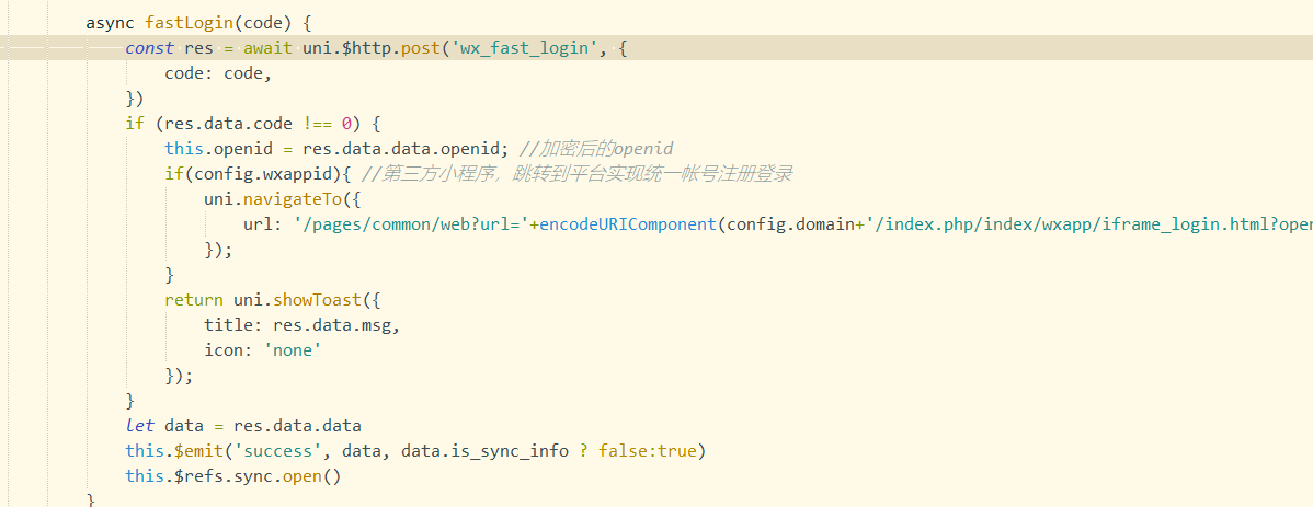 这里是最关键的地方,post 数据到 index.php/index/wxapp.login/wxapp_getuser_bycode.html
