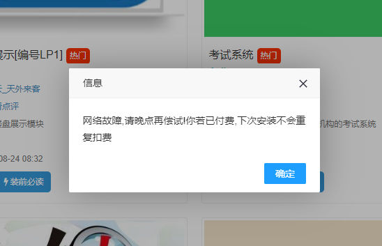 网络故障,请晚点再偿试!你若已付费,下次安装不会重复扣费