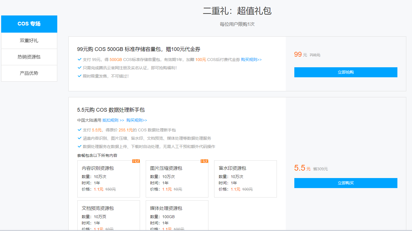 腾讯云:对象存储 COS 专场特惠