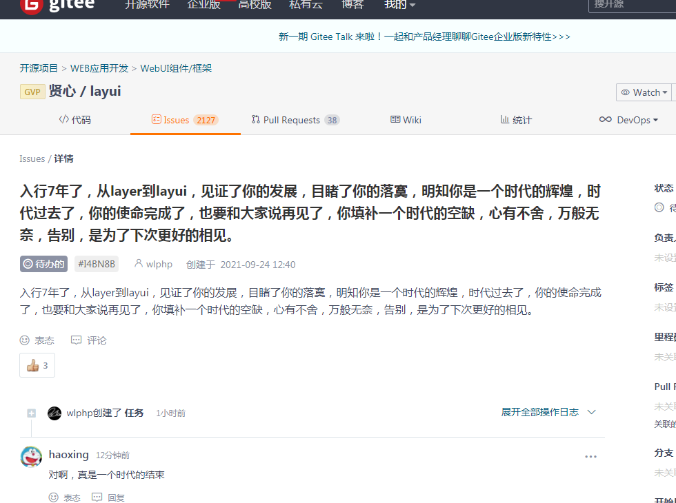 曾经如此辉煌的layui也即将倒闭了。可惜呀
