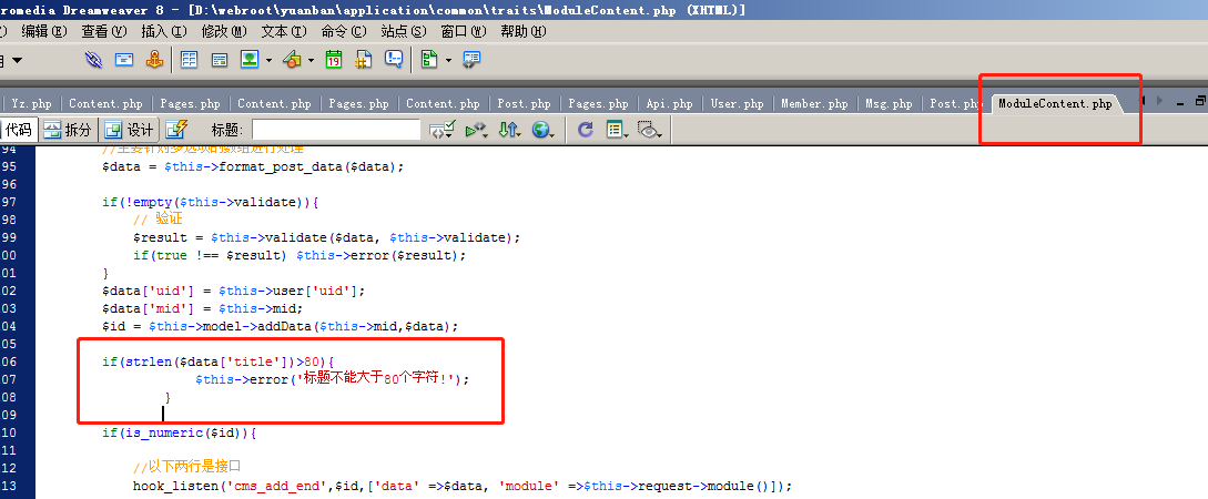 将这段代码放在application/common/traits/ModuleContent.php 插入到大约104行 $id = $this->model->addData($this->mid,$data); 这段代码下面即可。