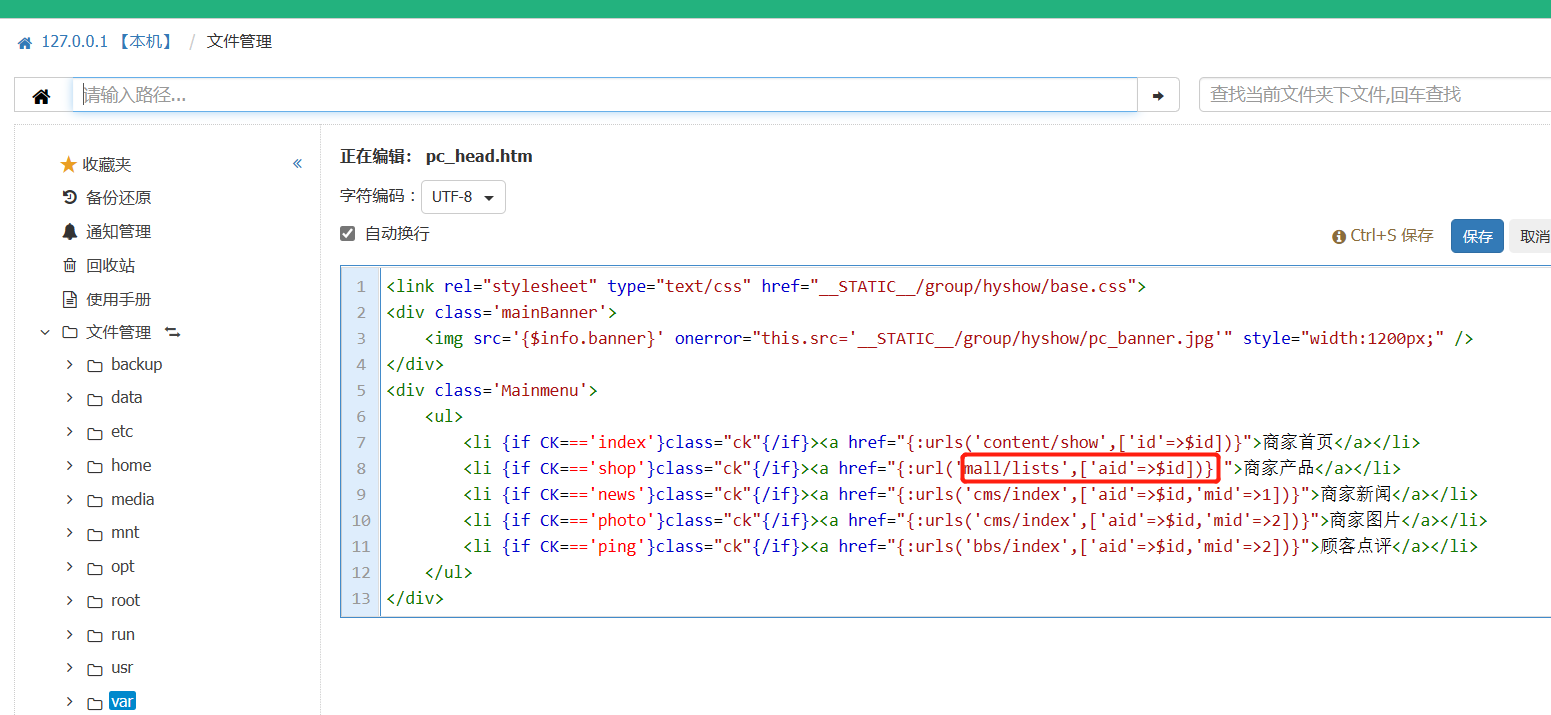 粘贴:{:url('mall/lists',['aid'=>$id])}