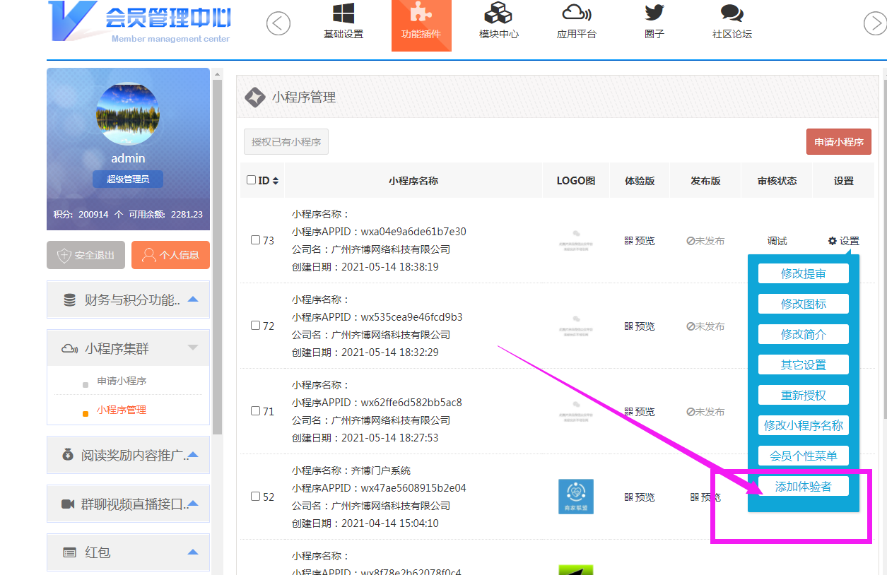 测试地址:https://www.szup.com/member.php/member/plugin/execute/plugin_name/wxopen/plugin_controller/info/plugin_action/add.html