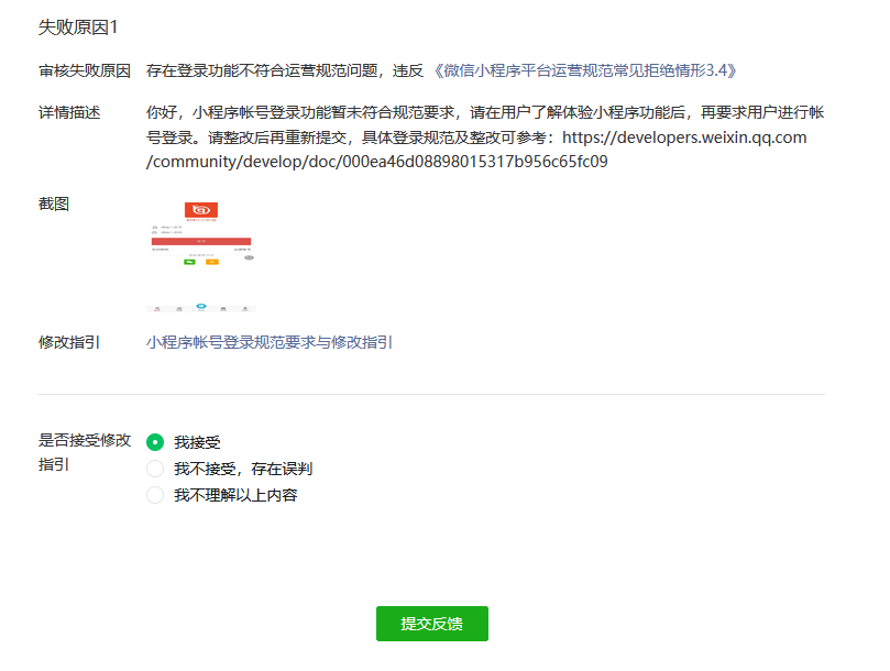 我们小程序登入申核不通过是不是没有取消选项?