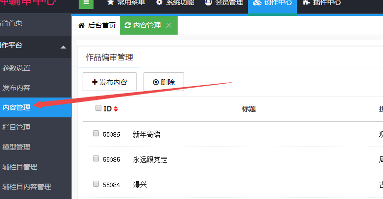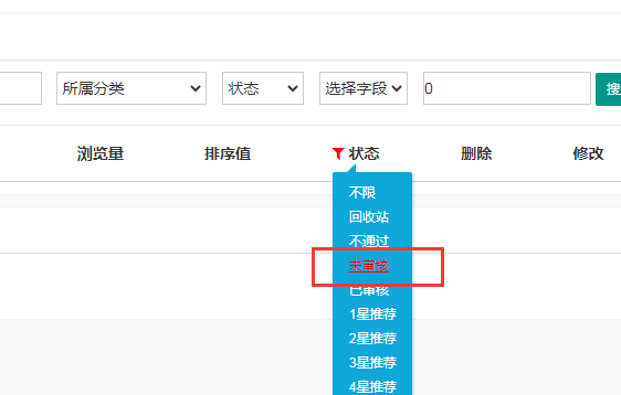 如何点中内容管理默认显示未审列表