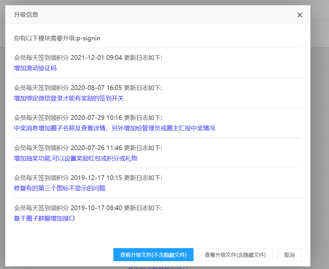 现在有一个比较严重的问题,如下图所示,提示签到内容有更新,点击查看升级文件,一直看到底部,却没有标签内容更新的文件,好奇怪。