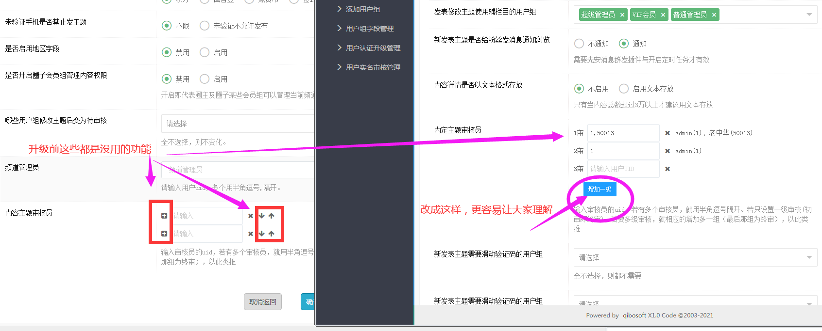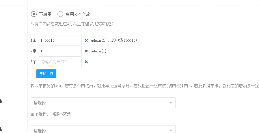 之前的审核员功能,当时是匆匆忙忙加功能,所以就勉强的凑合着用一维数组的字段,大家初次使用是很别扭的,不过管理员自己使用就问题不大。懂得什么意思就好了。