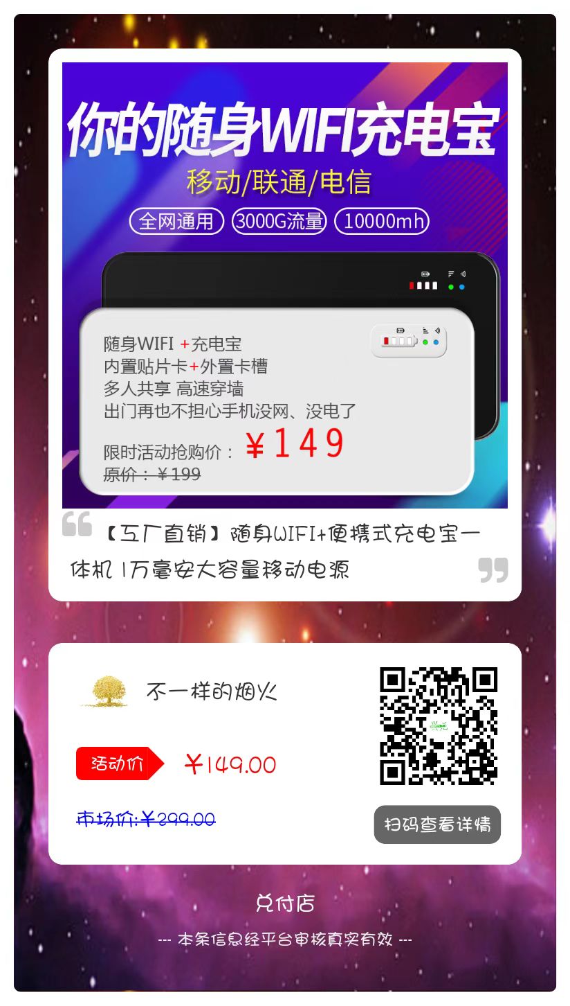 咱们平台,有没有经常需要出门上网的小伙伴。我推荐个牛逼产品。
