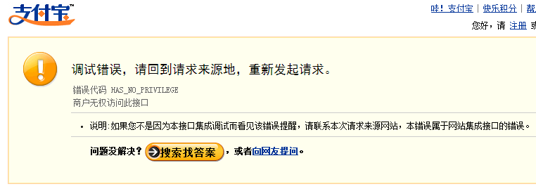 按照官方教程做了支付宝链接,在本地调试出现:是接口没有申请成功呢,还是必须到网站上使用.