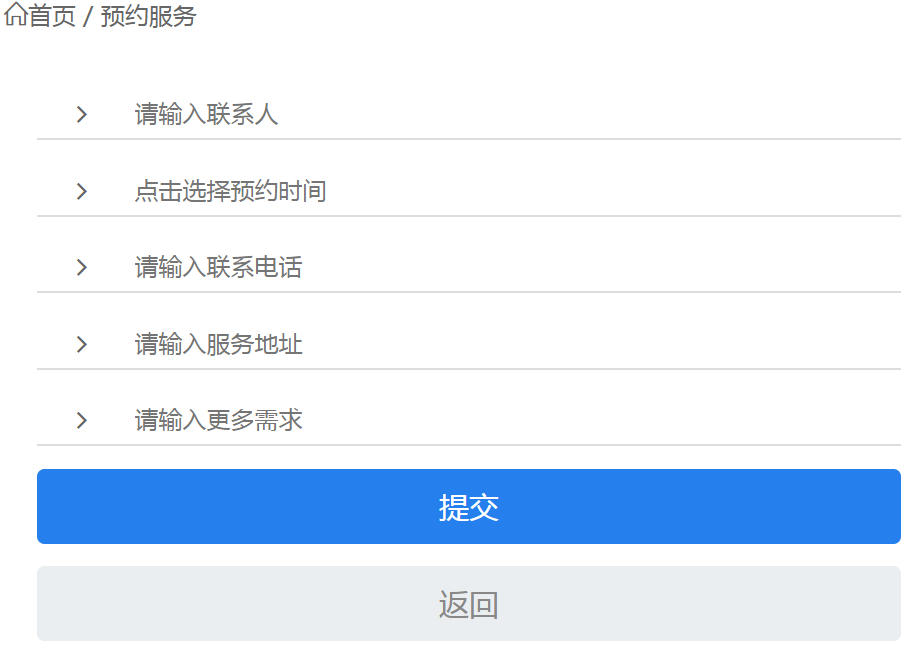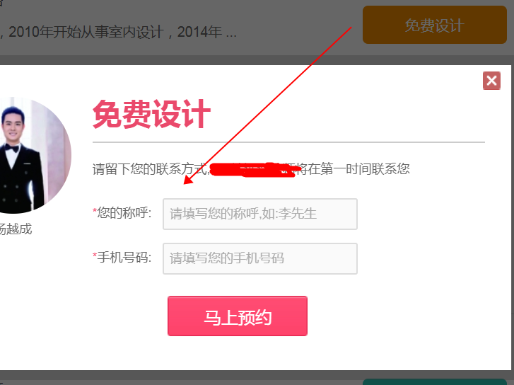 不错了,在加一个附近功能更完善,我还一个见议这个首页“立即预约”按纽加一个JS弹框提交,把截图二也就是提交的表单用JS弹框,而这个弹框我们可在任意超连的地方加