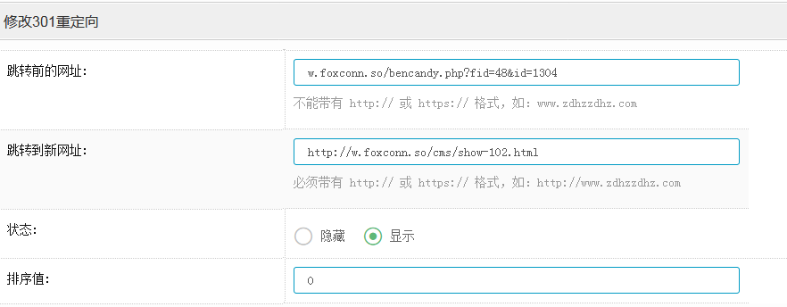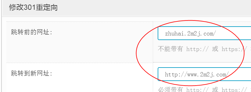 现在把跳转前的网址: zhuhai.2m2j.com/ 跳转到新网址:http://www.2m2j.com/ 是这样设置的吗