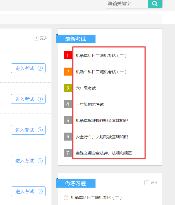 大家的考试模块右侧的最新考试正常吗