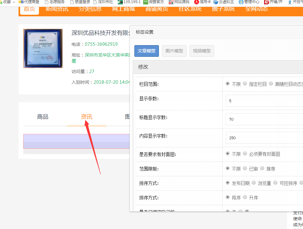 修改上图,黄页系统怎么设置都调用不了文章,亲们正常吗?上图