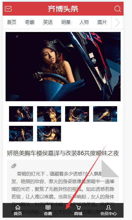 今日头条风格,在图片模型的内容页,点击底部导航a链接没反应的问题已解决,请后台更新即可