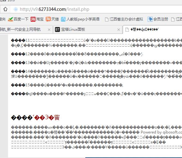 我在服务器上把V7安装好了!可以安装V9的时候,安装页面出现乱码,为什么同一个服务器,同样的方法安装,V9安装不成功。