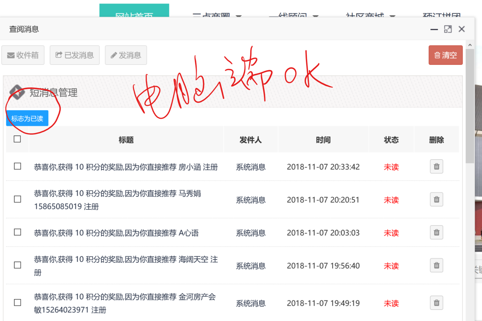 手机端:没有短消息“标志为已读功能”,希望官方及时完善