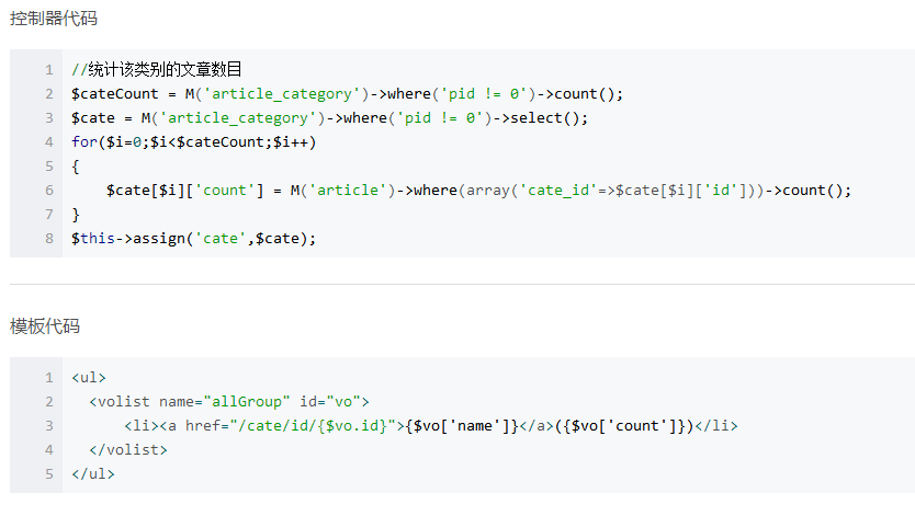 在首页统计某栏目下子栏目,当月文章数量和全部文章数量