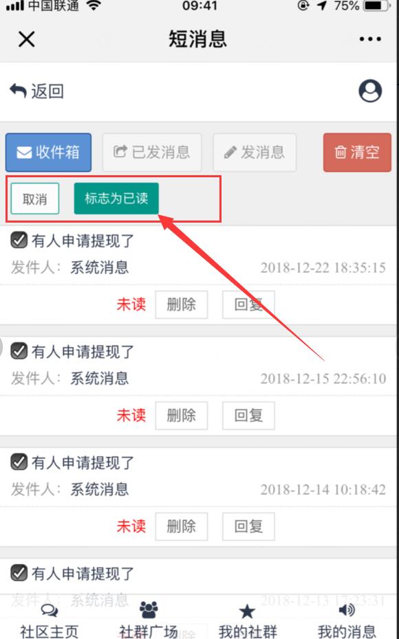 如下图,对于一些系统通知,大家可能并不想看的,但一直提示未读,要点击进去,才能显示已读.