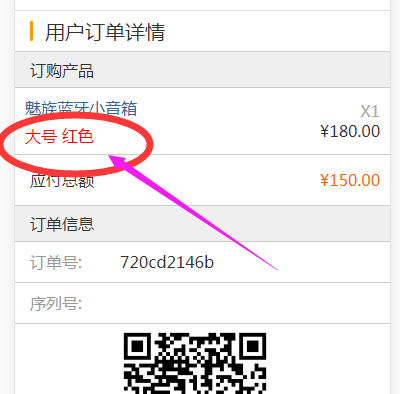之前内容页也可以设置尺寸型号,但是在订单中没显示出来。现在把他调出来了,方便商家查看用户订购的型号与尺寸。