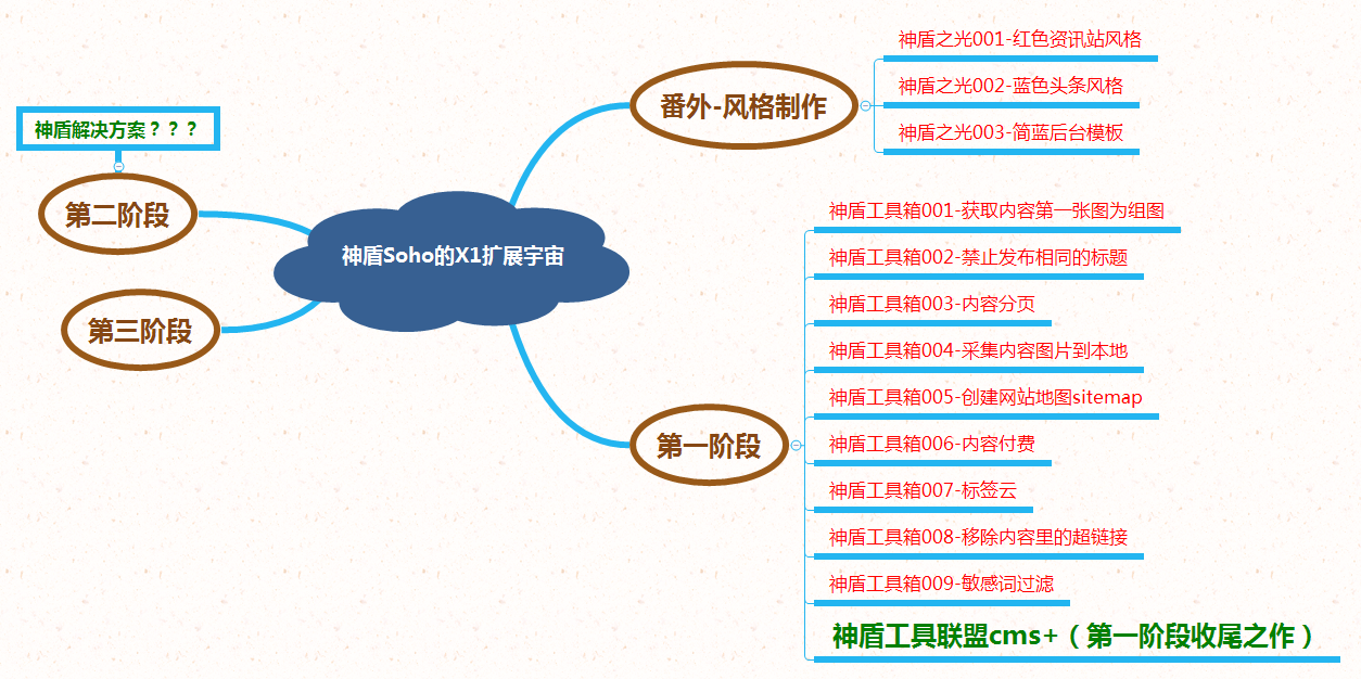 下面一张图概括神盾soho的扩展规划,助大佬们2019建站顺利,财源滚滚