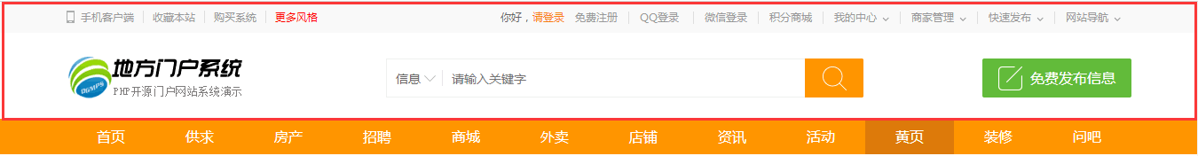 如下所示的头部导航栏,开发者可以只开发这一个头部,有几个不同的头部风格就完全能满足80%的用户需求!开发者扒网页代码,改改标签就搞定了呢!简直是捷径,不用整站开发那么麻烦了!