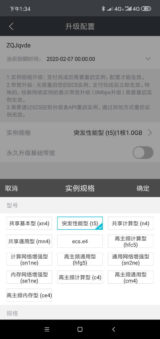 你点下面网址进去看看,T5,1核1G,是不是 293 ?
