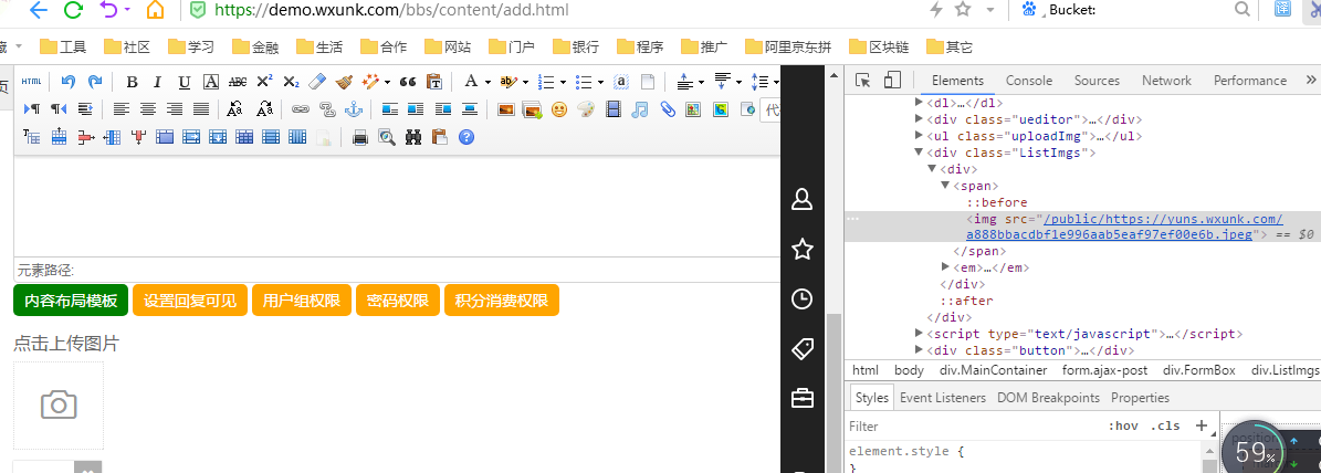 底下这张图片就是前面发贴的样子,因为路径不对,看不到缩略图,用户会以为没传上去,一直在重复传图