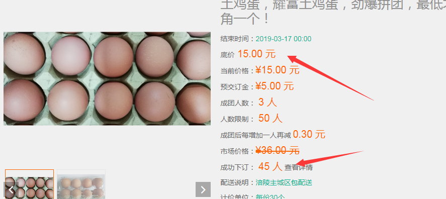 昨天上了一个产品是盒装土猪肉,上传后没多久就有人下单,但是立马凸显出几个订单上的问题,没敢扩散,想今天发来老大们看看是不是可以解决。但想了一下,多发个产品看看还有没有其它问题,于是今天下午又上传了一个土鸡蛋做拼团,没想到这个产品很受欢迎,预备拿1500个做试验,可能今晚都要被抢完,仔细分析了订单,发现现在的订单有以下问题: