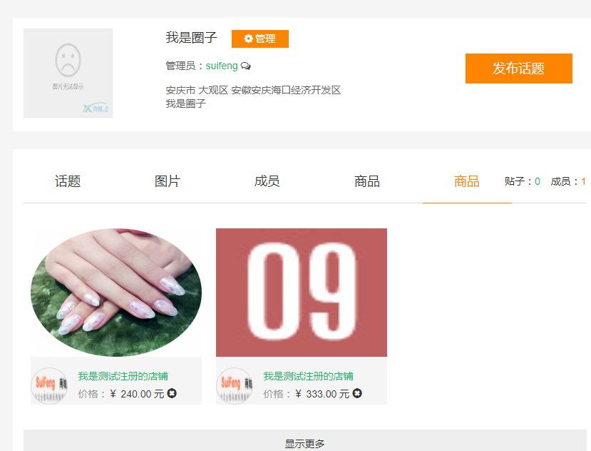 我选择了绑定圈子 在圈子就可以正常显示出来