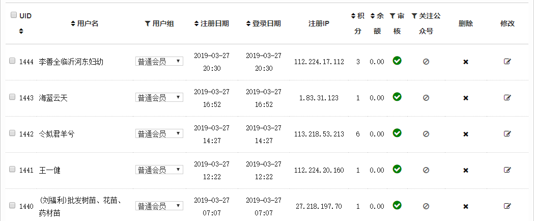 2、但是手动注册,手机号码注册,在后台正常显示——手机号码,已经验证。