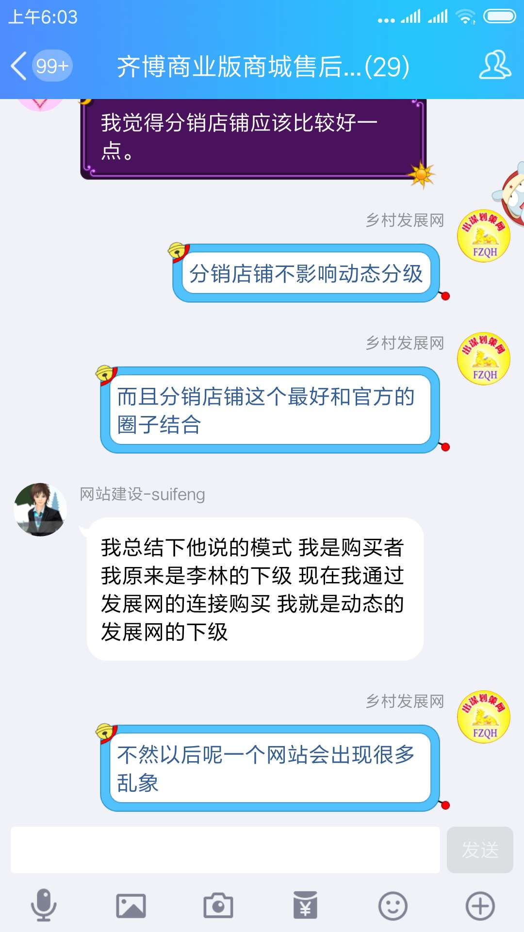 我购买了suifeng的商城,我知道你们官方一个二个都是咬卵犟,一根筋根本没找到怎么把齐博做大做强的方法和利用齐博X1系统去做成大事业的思路,我一直在动员suifeng利用商城做货源联盟,用这个来带活你们官方,带我们这些站长走远方,而且利用这个吸引无数的新站长使用X1系统,从而盘活这个盘,这本来该是官方做的事,但我知道你们都很自我,一根筋,所以我才想动员suifeng做,当然真做出来了我作为其中的一个受益者,也能收益!